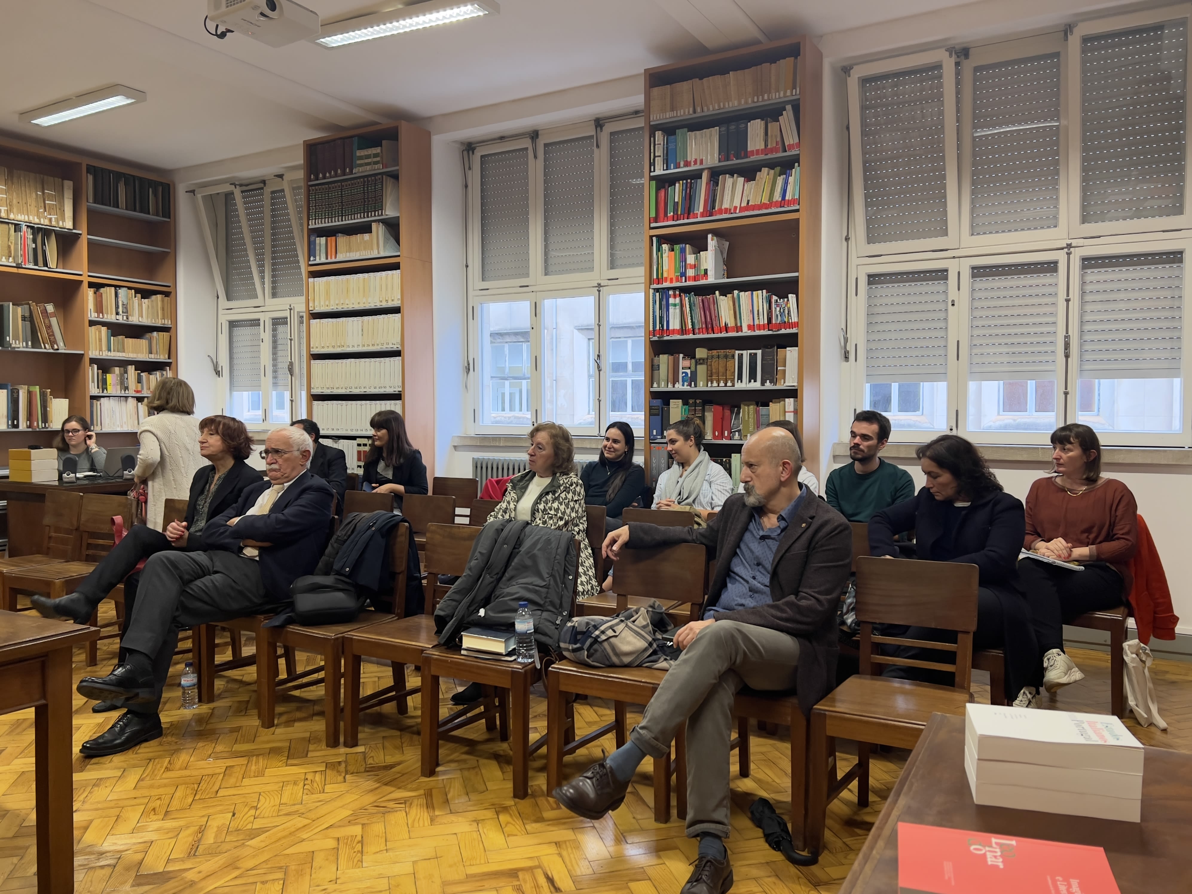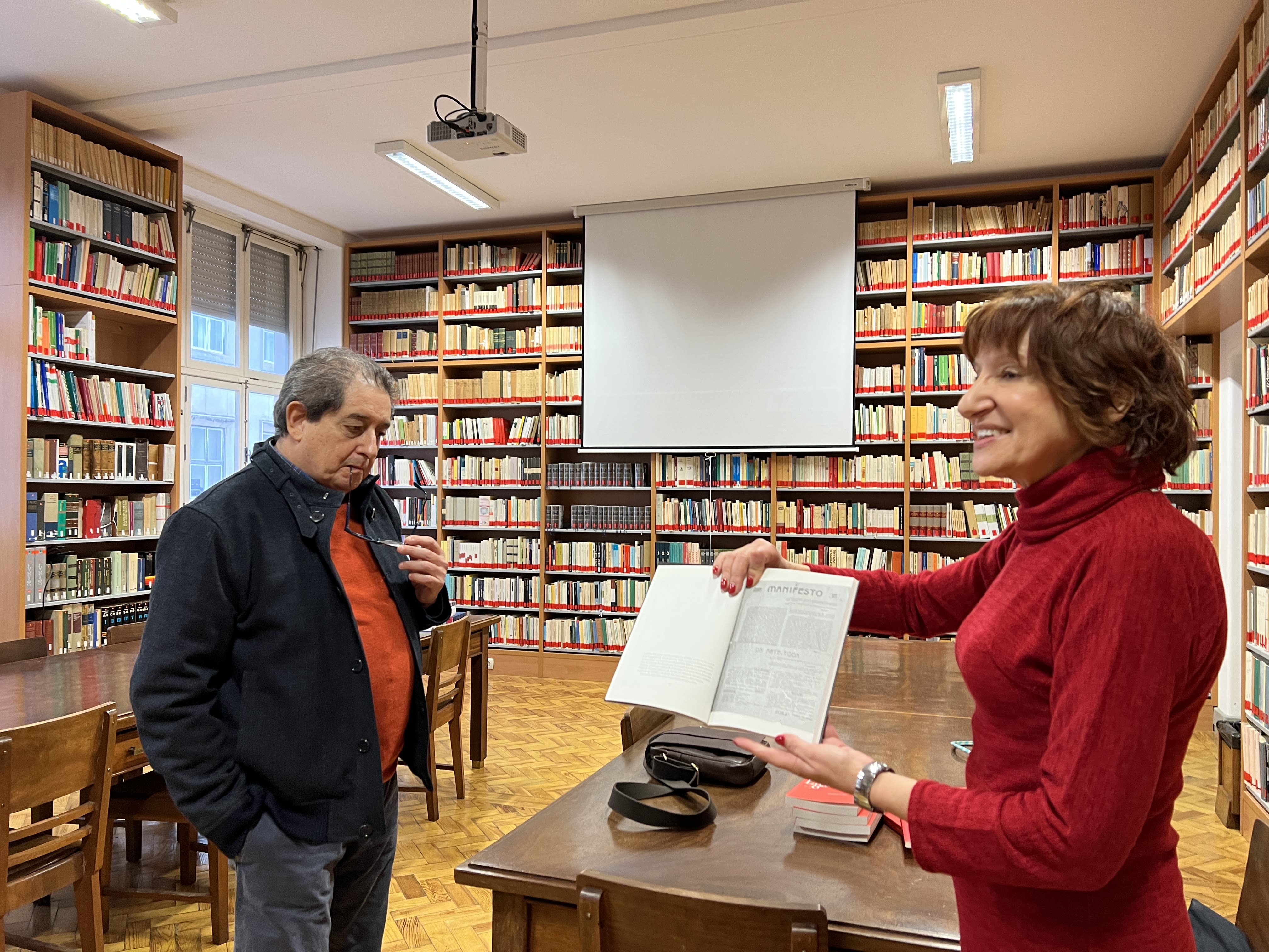 João Figueira e Rita Marnoto em "Conversas na Biblioteca", na Sala do Instituto de Estudos Italianos.