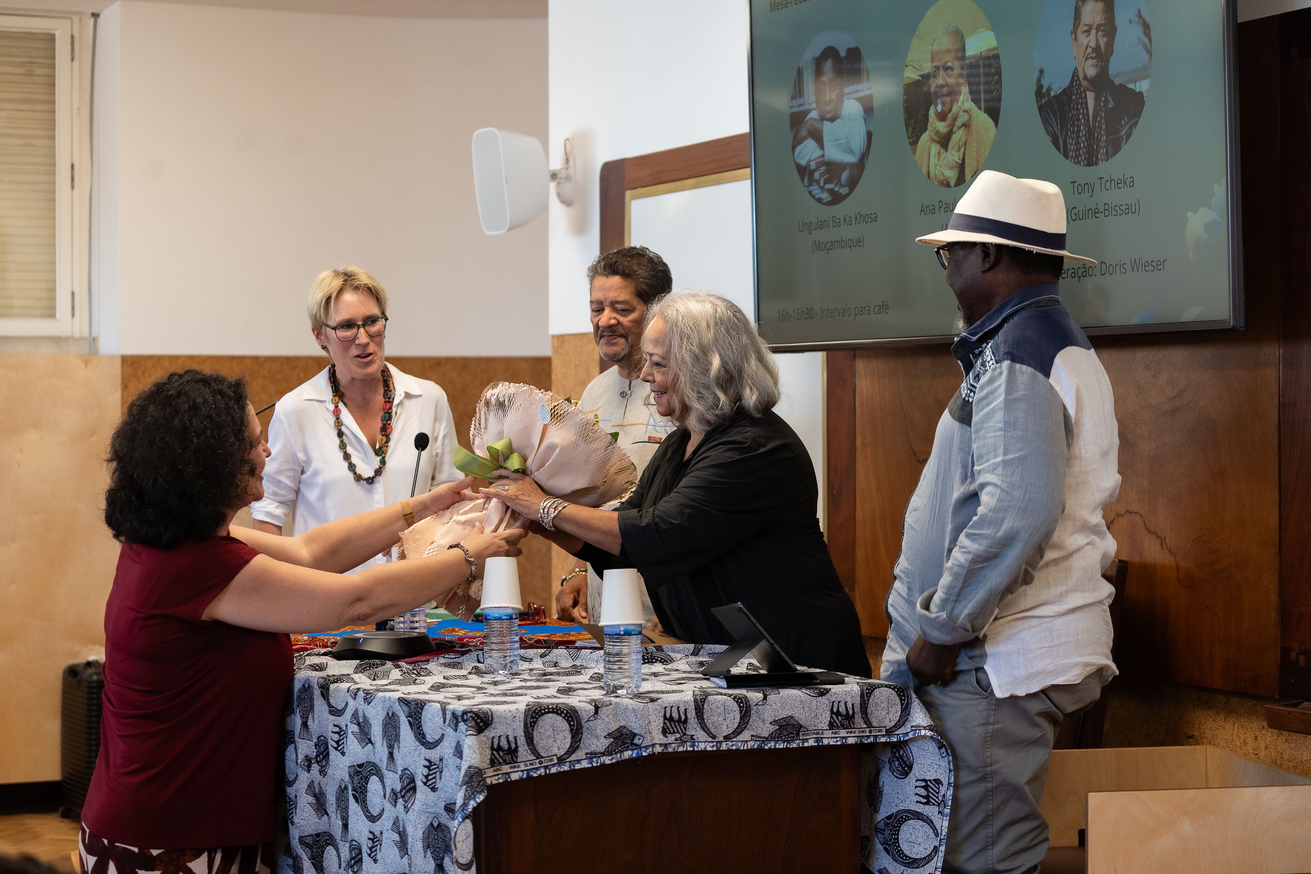 Cerimónia de entrega do prémio Norberto Pires a Clara Almeida Santos e Francisco Sena Santos pelo projeto Camões, outros 500