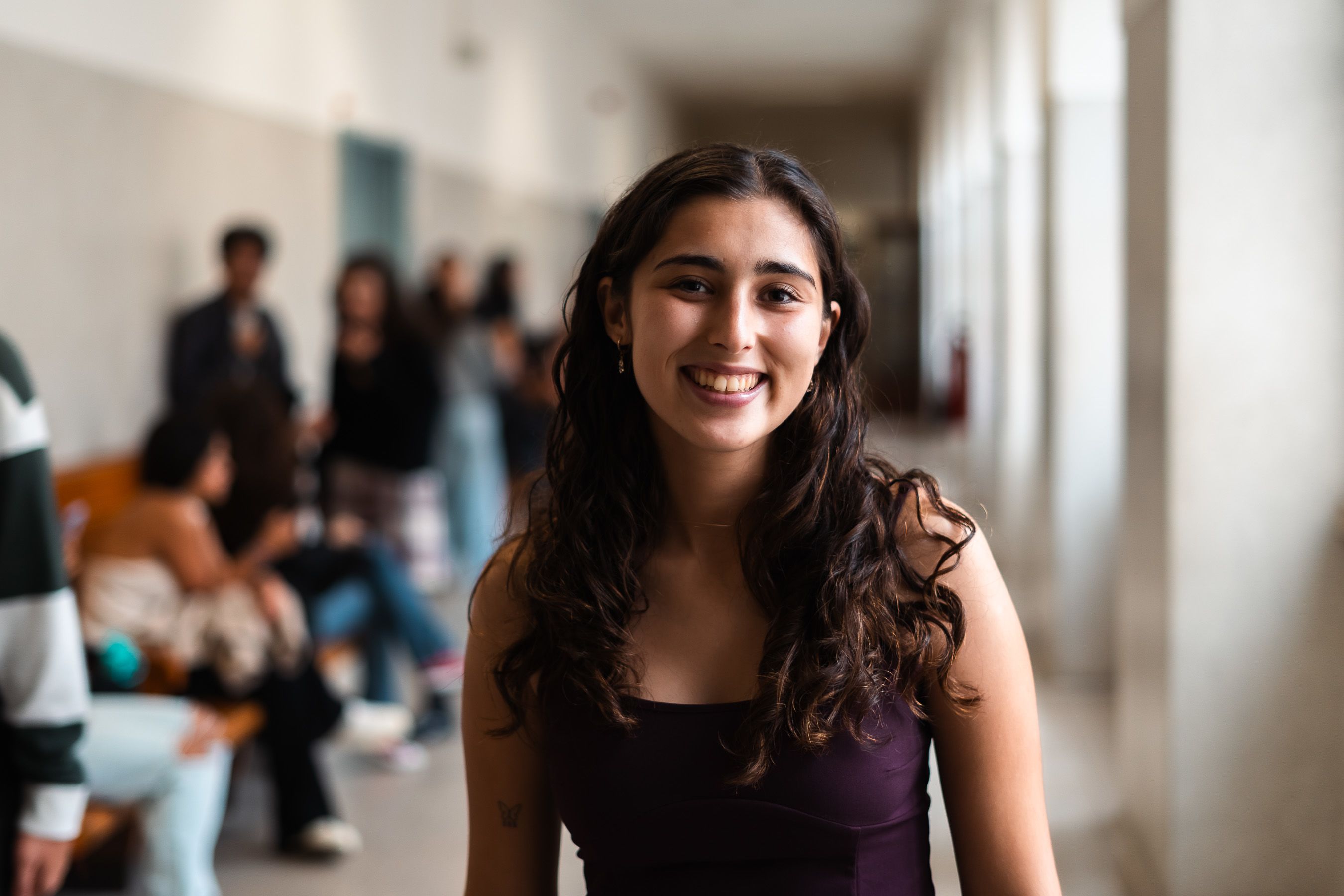 Não é a primeira vez que Salomé se senta nos anfiteatros da FLUC. Uma bolsa de estudos ofereceu-lhe a inscrição na UV, e uma semana foi suficiente para a deixar rendida às Letras. “A minha primeira opção já era vir para aqui, a UV só veio provar isso”, conta. Este ano, matriculou-se na Licenciatura em Estudos Europeus, e ficou um passo mais próximo de seguir a sua profissão de sonho. “Este é um percurso muito pessoal, nosso, principalmente porque a Faculdade nos permite o envolvimento em vários projetos extracurriculares que também sejam do nosso interesse”.